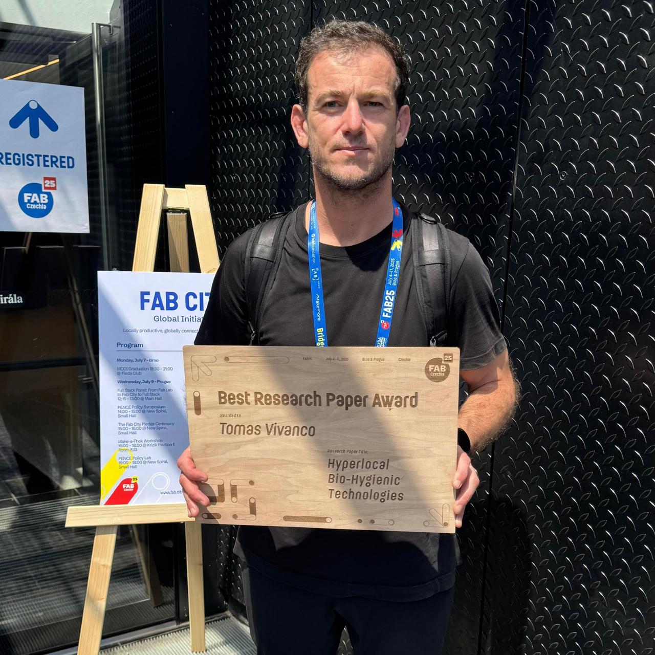 En julio de 2025, durante la 25ª International Fab Lab Conference & Symposium desarrollada en Brno y Praga, el profesor Tomás Vivanco de la Escuela de Diseño UC obtuvo el premio al mejor artículo de investigación con su paper “Hyperlocal Bio‑Hygenic Technologies”, que propone un modelo innovador de computación planetaria a partir de enfoques locales.