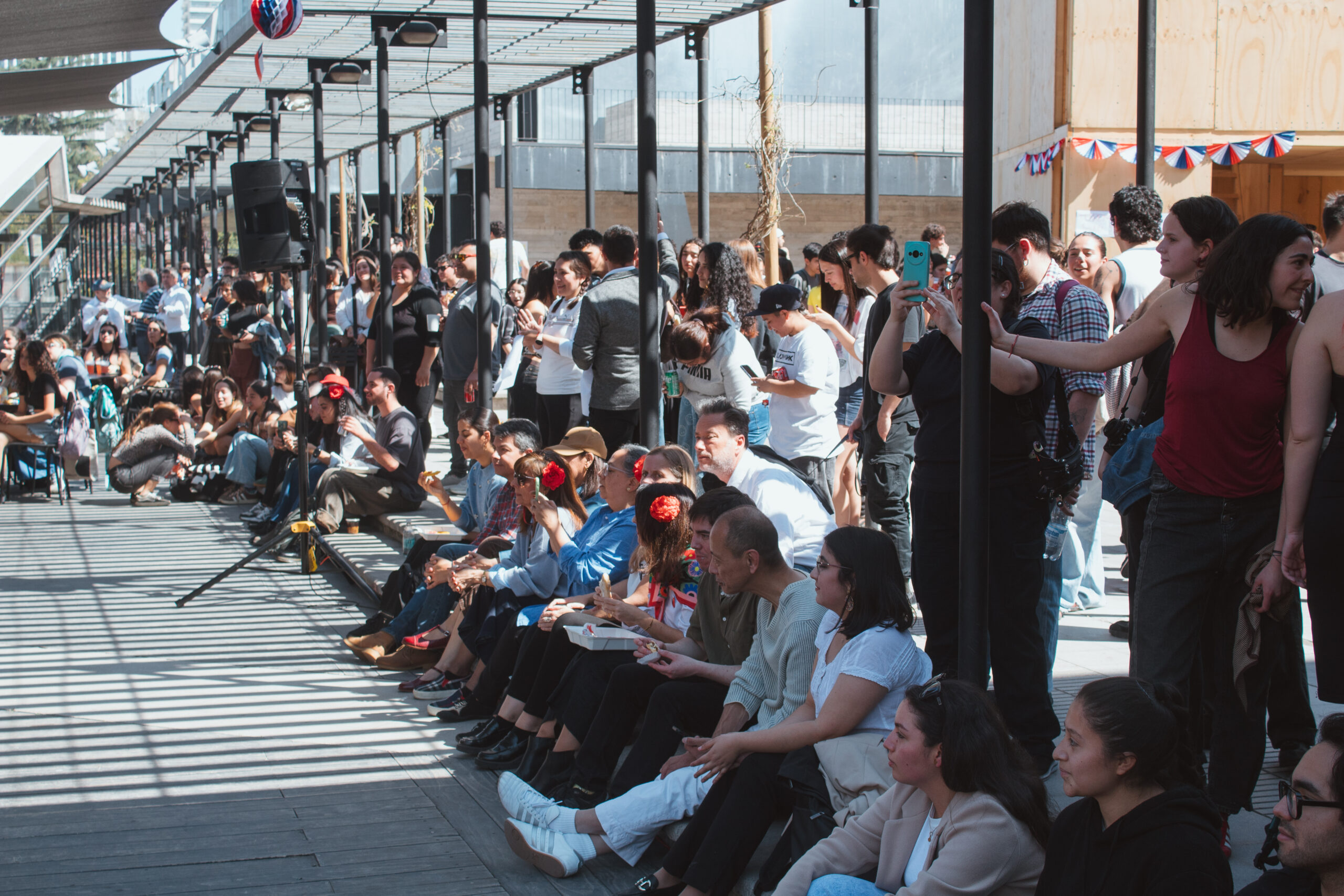 El pasado 12 de septiembre, el Patio de Madera se vistió de rojo, azul y blanco para dar inicio a la Fonda Los Tijerales, organizada por la Facultad de Arquitectura, Diseño y Estudios Urbanos, FADEU.