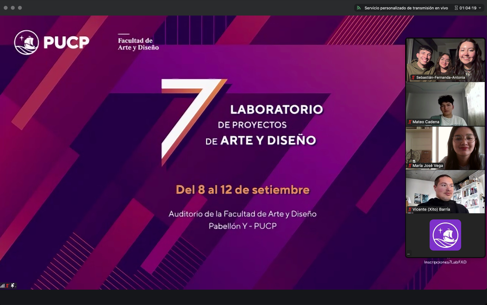 El pasado 9 de septiembre, el equipo Nodo Sur, conformado por los estudiantes de Diseño UC Vicente Barría, Sebastián Castro, Antonia Catalán, Fernanda Pineda y María José Vega, participó en el 7° Laboratorio de Proyectos de Arte y Diseño, organizado por la Pontificia Universidad Católica del Perú (PUCP). Este encuentro reunió a estudiantes, docentes e investigadores de América Latina con el objetivo de fortalecer el diálogo interdisciplinario entre arte y diseño, y de promover la reflexión crítica sobre los procesos creativos y de investigación que los sustentan.