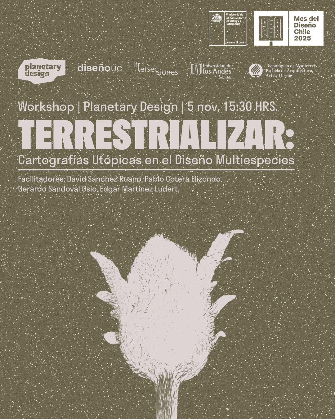 Este taller invita a repensar el diseño desde una perspectiva planetaria y más-que-humana, promoviendo la integración de múltiples especies en la concepción de espacios y futuros posibles. A través de una metodología participativa y creativa, el taller guía a los participantes en un recorrido que inicia en la escala íntima de una habitación y se expande hacia la complejidad de una biorregión, utilizando herramientas como la fotografía participativa, el mapeo digital con Google Earth y la creación colaborativa en tableros Miro.