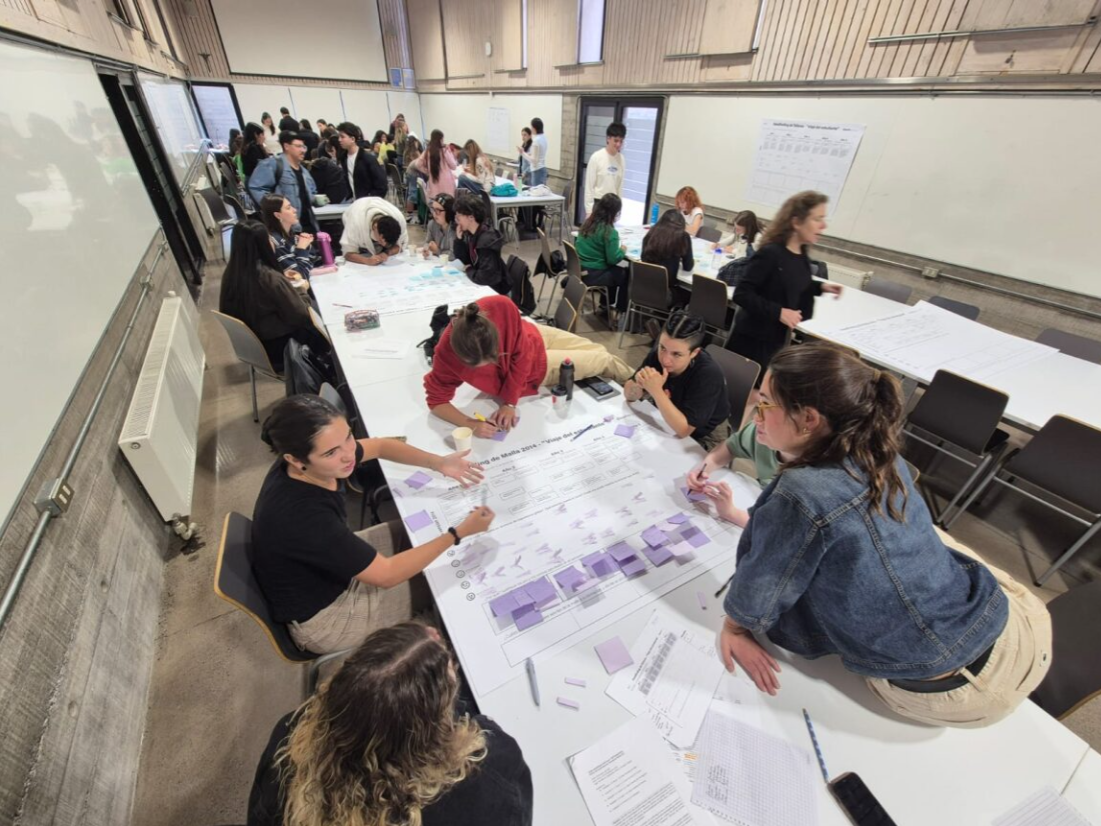 El primer focus group, realizado el 20 de marzo, estuvo dirigido a estudiantes desde Taller 4 hasta Seminario de Título, incluyendo además la participación de egresados de la malla anterior. En total, la instancia reunió a 40 estudiantes, quienes compartieron sus experiencias, percepciones y observaciones respecto a su trayectoria formativa.